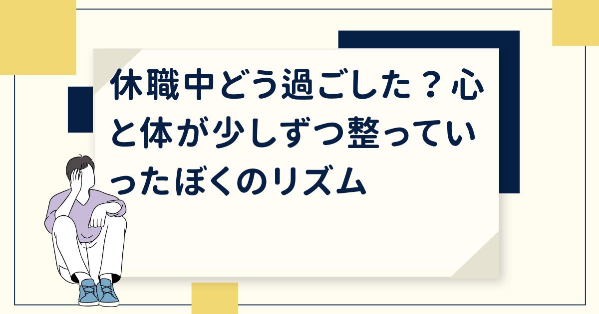 CATEGORY 休職・復職 管理職を続けるか辞めるか。復職後に直面した大きな迷い 2025.10.04 休職・復職 h2 ゆる再起動ログ 復職して3ヶ月。ようやく見えてきた自分のペース 2025.10.02 休職・復職 h2 ゆる再起動ログ 復職して1ヶ月。慣れてきた頃にぶつかった壁 2025.10.02 休職・復職 h2 ゆる再起動ログ 復職して1週間。少しずつ、無理のないペースが見えてきた 2025.06.08 休職・復職 h2 ゆる再起動ログ 復職初日。薬を飲んで、それでも一歩を踏み出した日 2025.06.08 休職・復職 h2 ゆる再起動ログ 復職を決めた日。怖さもあったけど、進んでみようと思えた理由 2025.06.08 休職・復職 h2 ゆる再起動ログ 復職前、上司に電話した日。正直イヤだったけど、それでも連絡した 2025.06.01 休職・復職 h2 ゆる再起動ログ 休職中にやってよかったこと5選|焦らず過ごすためのヒント 2025.05.18 休職・復職 h2 ゆる再起動ログ 休職中どう過ごした?心と体が少しずつ整っていったぼくのリズム 2025.05.17 休職・復職 h2 ゆる再起動ログ 適応障害で休職したぼくが、休みの中で感じたこと 2025.05.11 休職・復職 h2 ゆる再起動ログ もっと見る