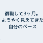 復職して3ヶ月。まだ不安や疲れやすさはありますが、少しずつ「自分のペース」で仕事と向き合えるようになってきました。
